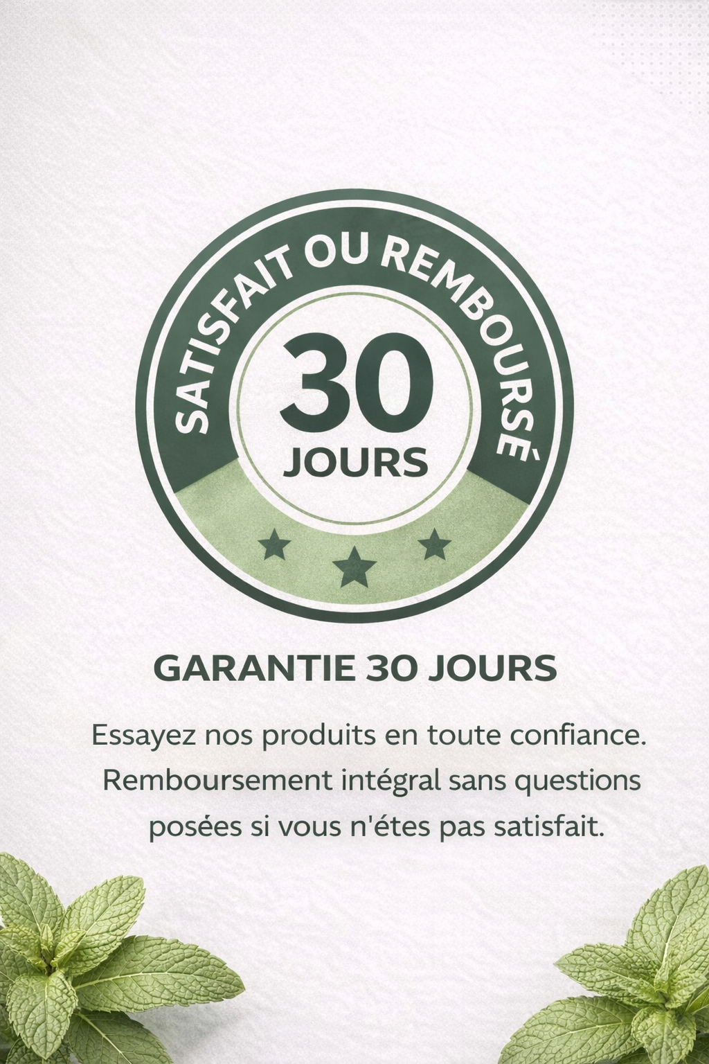 30 jours satisfait ou remboursé. Teste la routine. Si tu n'es pas convaincu, on te rembourse, aucune question posée.